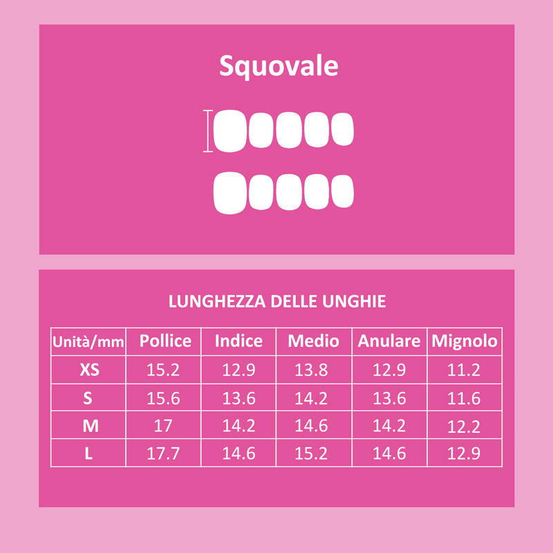 Non dimenticare di misurare entrambe le mani, molte volte le unghie di una mano possono avere dimensioni diverse!
